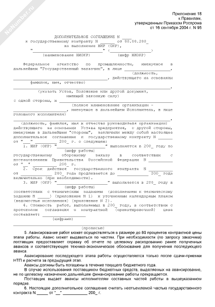 Дополнительное соглашение к государственному контракту на выполнение научно-исследовательской (опытно-конструкторской) работы