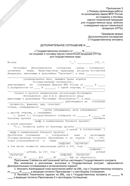 Дополнительное соглашение к государственному контракту на создание и поставку научно-технической продукции (НТПР) для государственных нужд МПР России