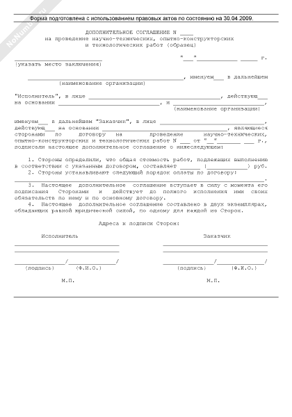 Дополнительное соглашение на проведение научно-технических, опытно-конструкторских и технологических работ (рекомендуемый образец заполнения)