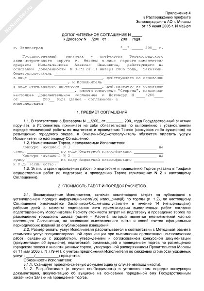 Дополнительное соглашение по выполнению в установленном порядке технической работы по подготовке и проведению торгов (конкурсов либо аукционов) на размещение городского заказа