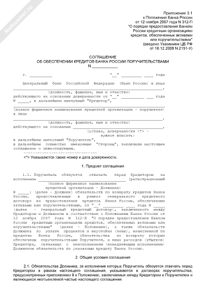 Соглашение об обеспечении кредитов Банка России поручительствами (рекомендуемый образец заполнения)