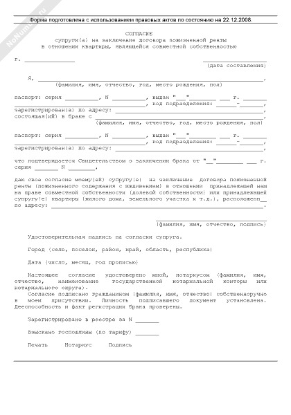 - 11Письменное согласие супруги(а) на заключение договора пожизненной ренты в отношении квартиры, являющейся совместной собственностью