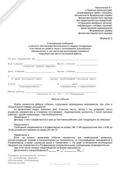 - 240Специальное сообщение в области обеспечения безопасности и защиты сотрудников или членов их семей в связи с исполнением должностных обязанностей, в том числе при выполнении служебных поручений вне места постоянной работы (форма № 1)