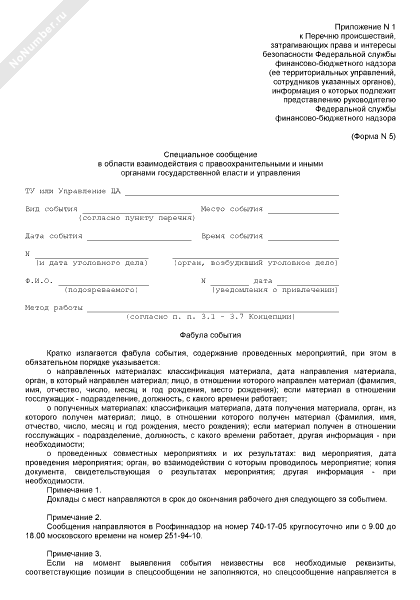 - 238Специальное сообщение в области взаимодействия с правоохранительными и иными органами государственной власти и управления (форма № 5)