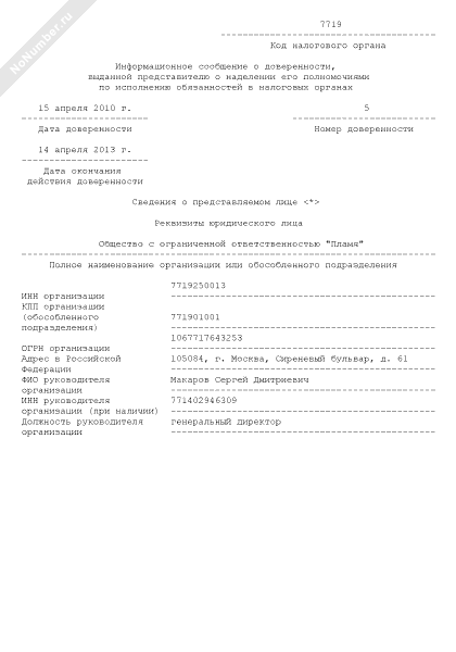 Информационное сообщение о доверенности, выданной представителю о наделении его полномочиями по исполнению обязанностей в налоговых органах (рекомендуемый образец заполнения)