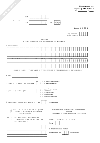 Сообщение о реорганизации или ликвидации организации. Форма № С-09-4
