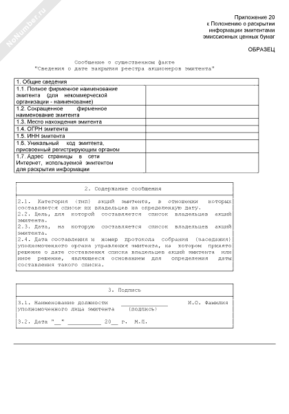 Сообщение о существенном факте «Сведения о дате закрытия реестра акционеров эмитента» (рекомендуемый образец заполнения)