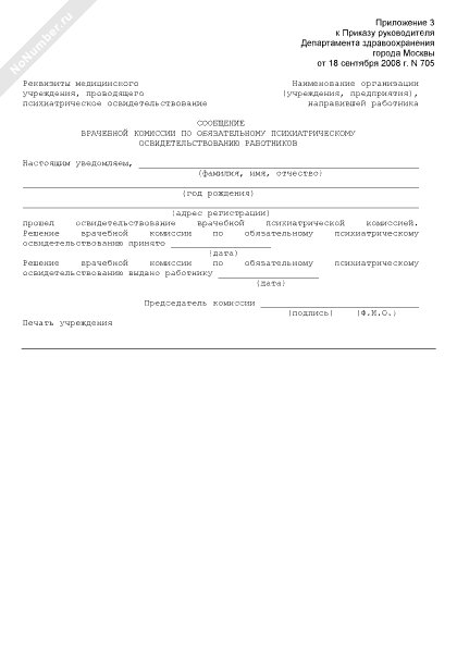 Сообщение врачебной комиссии по обязательному психиатрическому освидетельствованию работников, осуществляющих отдельный вид деятельности, в том числе деятельность, связанную с источниками повышенной опасности (с влиянием вредных веществ и неблагоприятных производственных факторов), а также работающих в условиях повышенной опасности в г. Москве