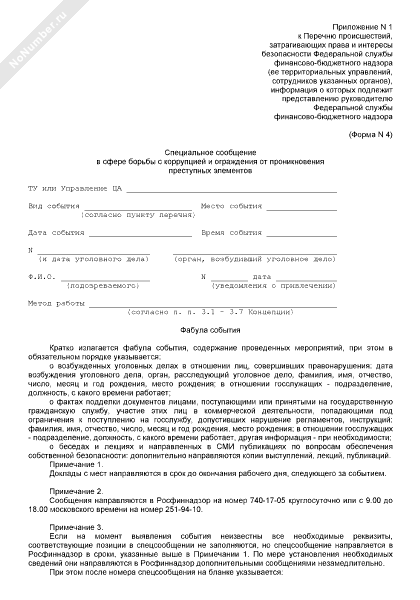Специальное сообщение в сфере борьбы с коррупцией и ограждения от проникновения преступных элементов (форма № 4)