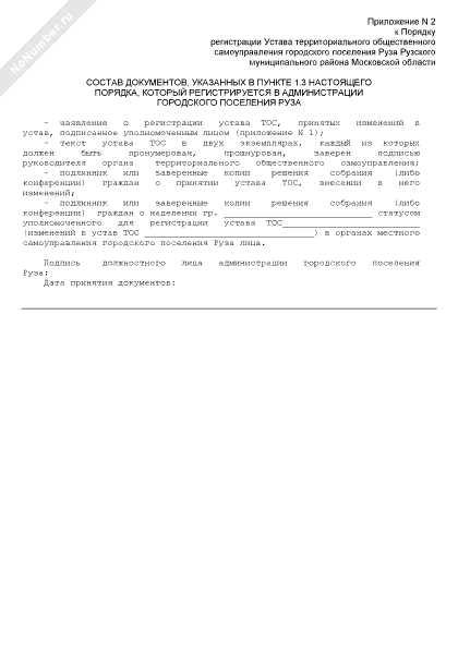 - 24Состав документов, необходимых для регистрации устава территориального общественного самоуправления городского поселения Руза Рузского муниципального района Московской области