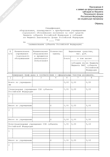 Спецификация оборудования, планируемого к приобретению учреждениями социального обслуживания населения за счет средств бюджета субъекта Российской Федерации и субсидий из бюджета Пенсионного фонда Российской Федерации (приложение к заявке на предоставление субсидии из бюджета Пенсионного фонда Российской Федерации на социальную программу) (рекомендуемый образец заполнения)