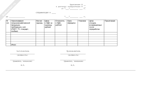 Спецификация (приложение к договору контрактации)
