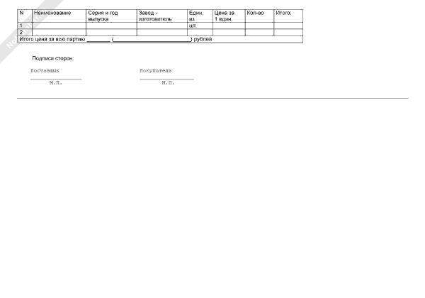 Спецификация на товар (приложение к типовому договору поставки товара)