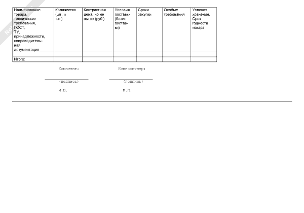 Спецификация товара (приложение к договору комиссии на закупку товара от имени комиссионера)