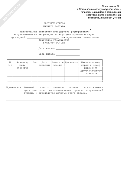 - 13Именной список личного состава воинского или другого формирования, направляемого на территорию (следующего транзитом через территорию) государства для проведения совместного военного учения
