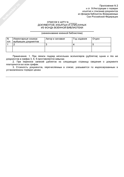 - 249Список к акту документов, изъятых и списанных из фонда военной библиотеки