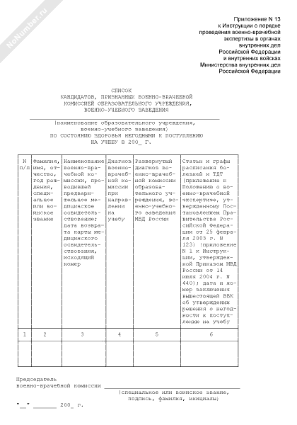 - 254Список кандидатов, признанных военно-врачебной комиссией образовательного учреждения, военно-учебного заведения МВД России негодными к поступлению на учебу