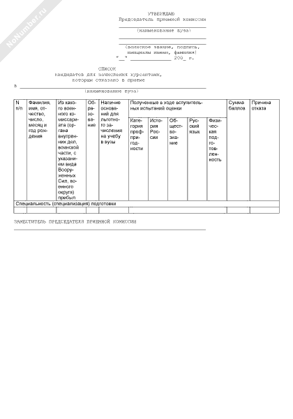 - 255Список кандидатов для зачисления курсантами, которым отказано в приеме в военно-учебное заведение