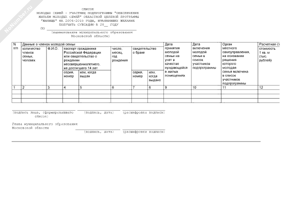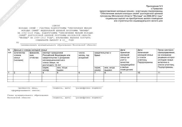 - 327Список молодых семей — участниц подпрограммы «Обеспечение жильем молодых семей» федеральной целевой программы «Жилище» на 2002–2010 годы, подпрограммы «Обеспечение жильем молодых семей» долгосрочной целевой программы Московской области «Жилище» на 2009–2012 годы», изъявивших желание получить социальную выплату
