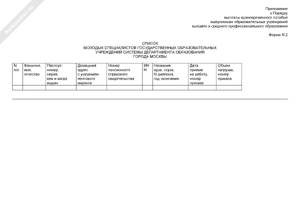 - 331Список молодых специалистов государственных образовательных учреждений системы Департамента образования города Москвы (форма № 1)