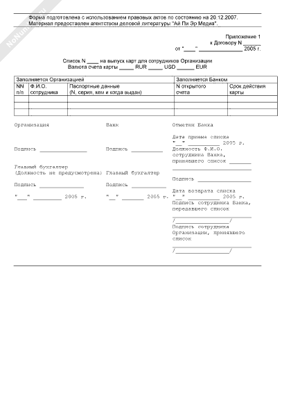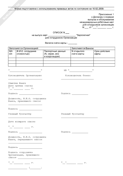 - 340Список на выпуск карт для сотрудников организации (приложение к договору на выпуск и обслуживание зарплатных банковских карт)