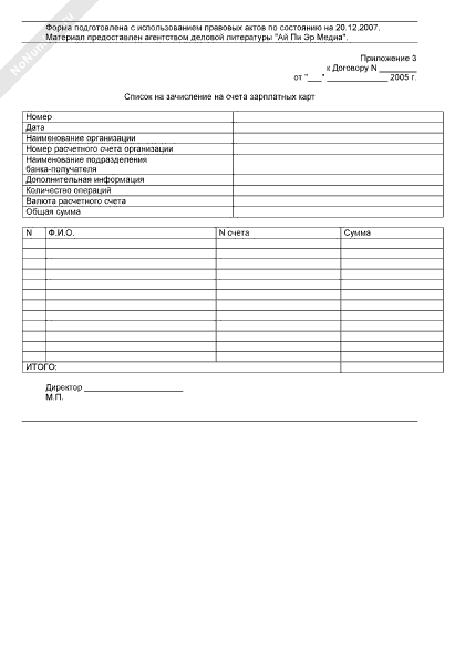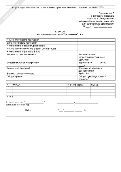 - 346Список на зачисление на счета зарплатных карт (приложение к договору на выпуск и обслуживание зарплатных банковских карт)