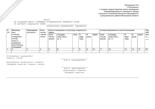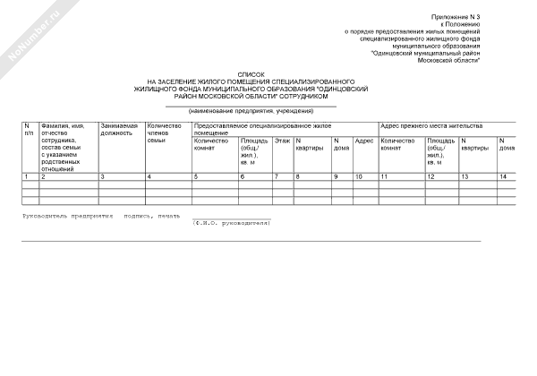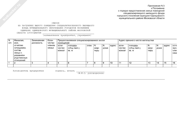 - 343Список на заселение жилого помещения специализированного жилищного фонда муниципального образования «Одинцовский район Московской области» сотрудником предприятия, учреждения