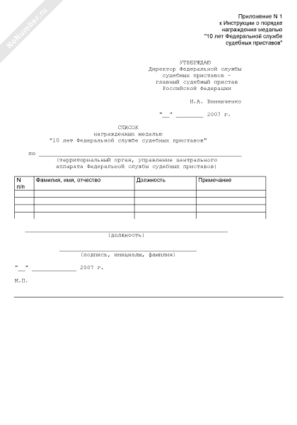 - 357Список награжденных медалью «10 лет Федеральной службе судебных приставов»