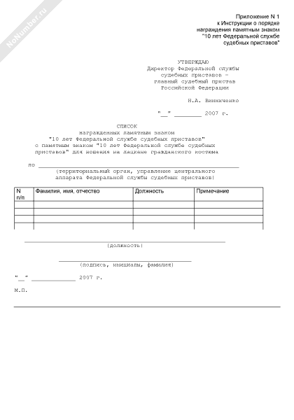 - 358Список награжденных памятным знаком «10 лет Федеральной службе судебных приставов» с памятным знаком «10 лет Федеральной службе судебных приставов» для ношения на лацкане гражданского костюма