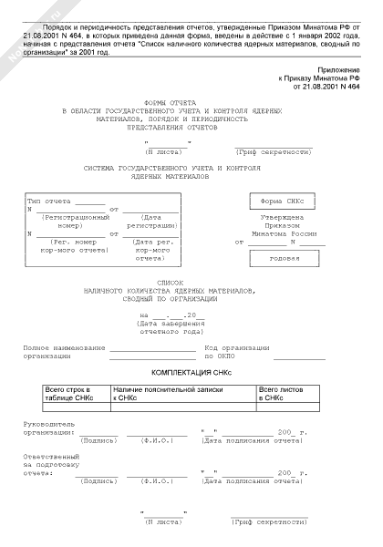 - 360Список наличного количества ядерных материалов, сводный по организации. Форма № СНКс