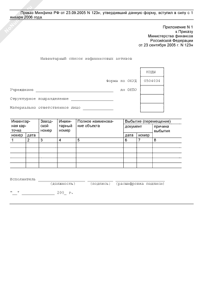 - 21Инвентарный список нефинансовых активов для ведения бюджетного учета для органов государственной власти Российской Федерации, федеральных государственных учреждений