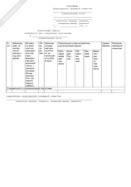 - 22Конкурсный список кандидатов для зачисления курсантами в военно-учебное заведение