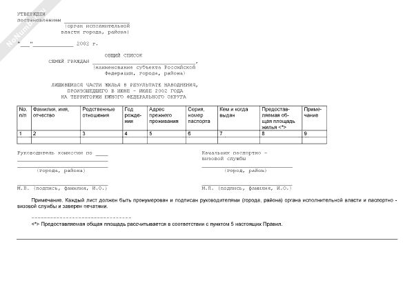 - 24Общий список семей граждан, лишившихся жилья в результате наводнения