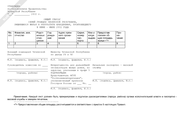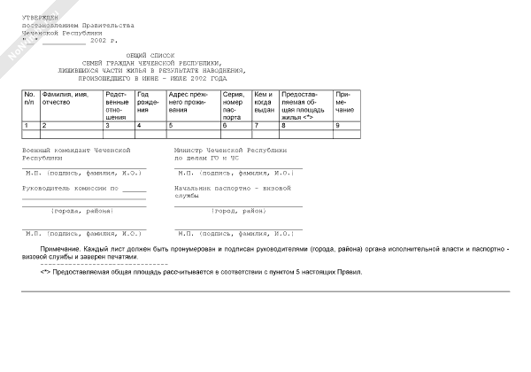 - 27Общий список семей граждан Чеченской Республики, лишившихся части жилья в результате наводнения