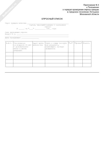 - 31Опросный список для голосования граждан (на собрании) городского поселения Лотошино Московской области