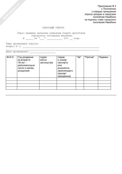 - 30Опросный список для голосования (на собрании) граждан городского поселения Нахабино Красногорского муниципального района Московской области