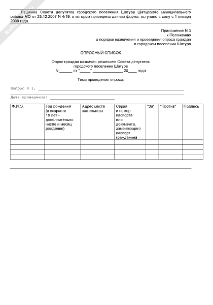 - 32Опросный список граждан по решению Совета депутатов городского поселения Шатура Московской области