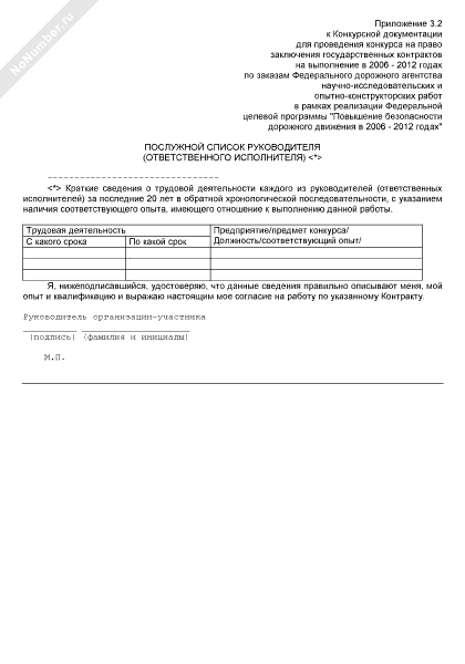 - 40Послужной список руководителя (ответственного исполнителя) — участника конкурса на право заключения государственного контракта на выполнение научно-исследовательских и опытно-конструкторских работ по заказам Федерального дорожного агентства