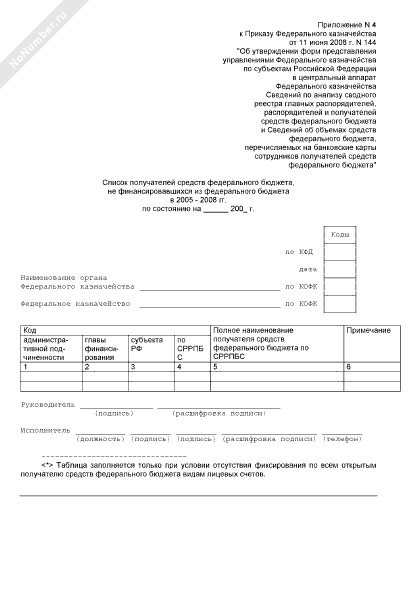 - 426Список получателей средств федерального бюджета, подведомственных главному распорядителю средств федерального бюджета, не представивших в органы Федерального казначейства оформленные в установленном порядке разрешения на осуществление приносящей доход деятельности, выданные главным распорядителем (распорядителем) средств федерального бюджета, в ведении которого находятся получатели средств федерального бюджета