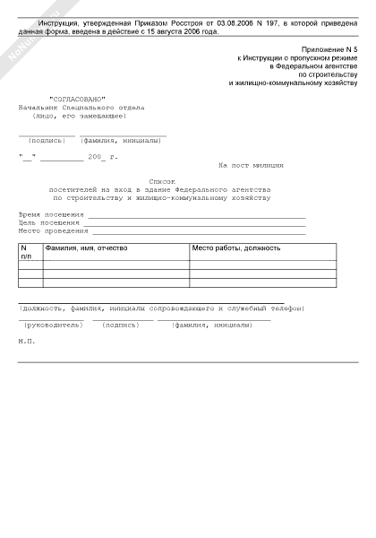 - 432Список посетителей на вход в здание Федерального агентства по строительству и жилищно-коммунальному хозяйству