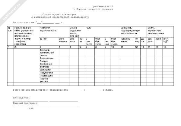 - 450Список прочих кредиторов с расшифровкой кредиторской задолженности (приложение к перечню имущества должника, в том числе имущественных прав)