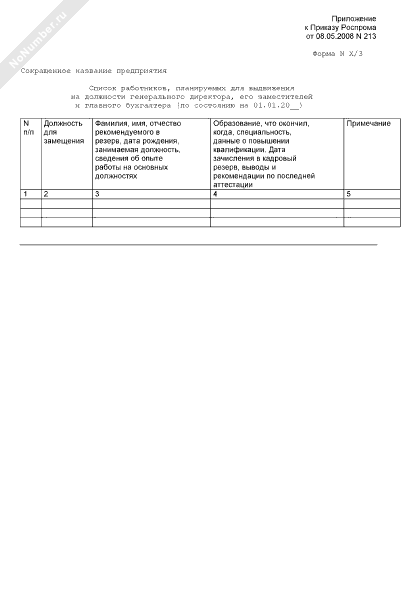 - 453Список работников, планируемых для выдвижения на должности генерального директора, его заместителей и главного бухгалтера предприятия, находящегося в сфере ведения и координации Роспрома. Форма № X/3