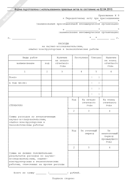 - 459Список расходов на научно-исследовательские, опытно-конструкторские и технологические работы (приложение к передаточному акту при присоединении некоммерческой организации к некоммерческой организации)