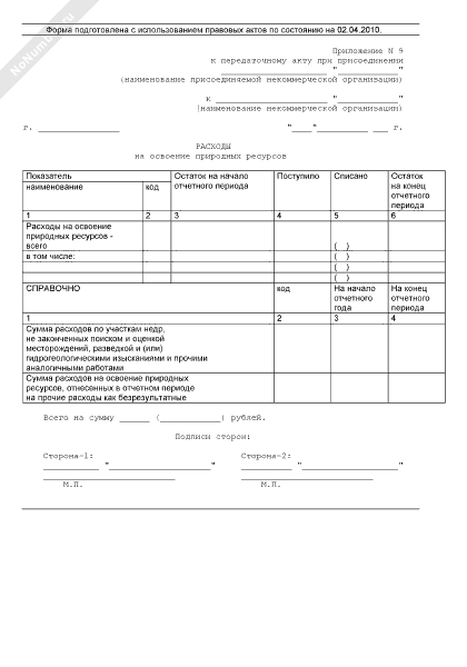 - 460Список расходов на освоение природных ресурсов (приложение к передаточному акту при присоединении некоммерческой организации к некоммерческой организации)