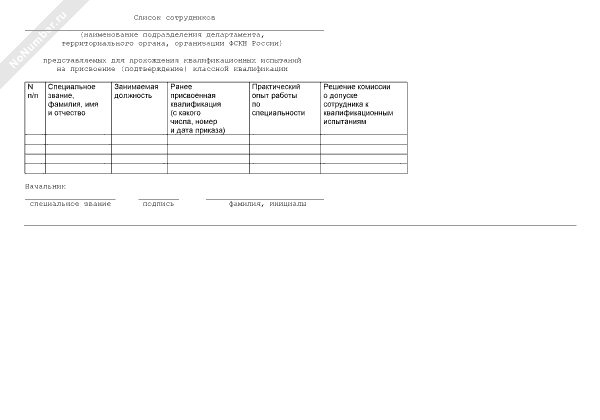 - 501Список сотрудников учреждения или органа уголовно-исполнительной системы, представляемых к сдаче испытаний на присвоение (подтверждение) квалификационной категории