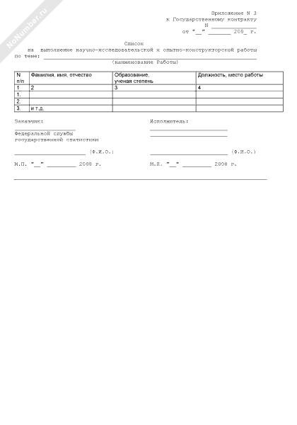 - 506Список специалистов на выполнение научно-исследовательской и опытно-конструкторской работы (приложение к государственному контракту на выполнение научно-исследовательской и опытно-конструкторской работы для государственных нужд)