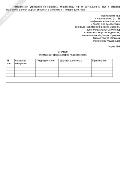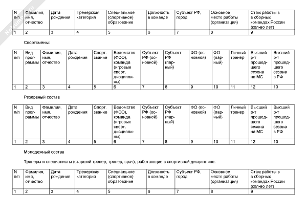 - 507Список спортивных организаторов подразделений (форма № 6)