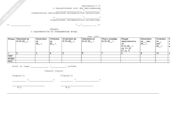 - 510Список справок о задолженностях в внебюджетные фонды (приложение к передаточному акту при присоединении некоммерческой организации к некоммерческой организации)