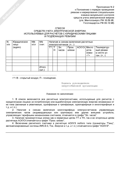- 511Список средств учета электрической энергии, используемых для расчетов с юридическими лицами и подлежащих ревизии
