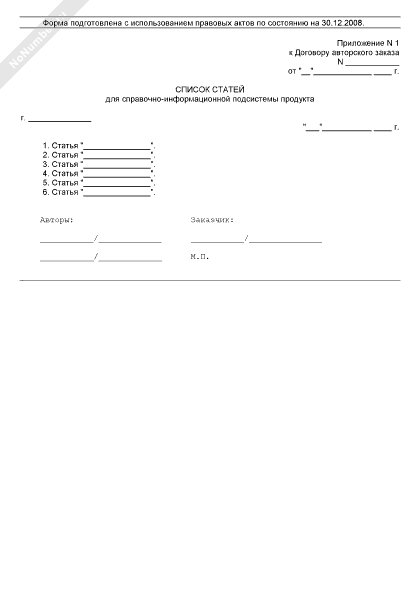 - 512Список статей для справочно-информационной подсистемы продукта (приложение к авторскому договору заказа на создание мультимедиа-продукта)